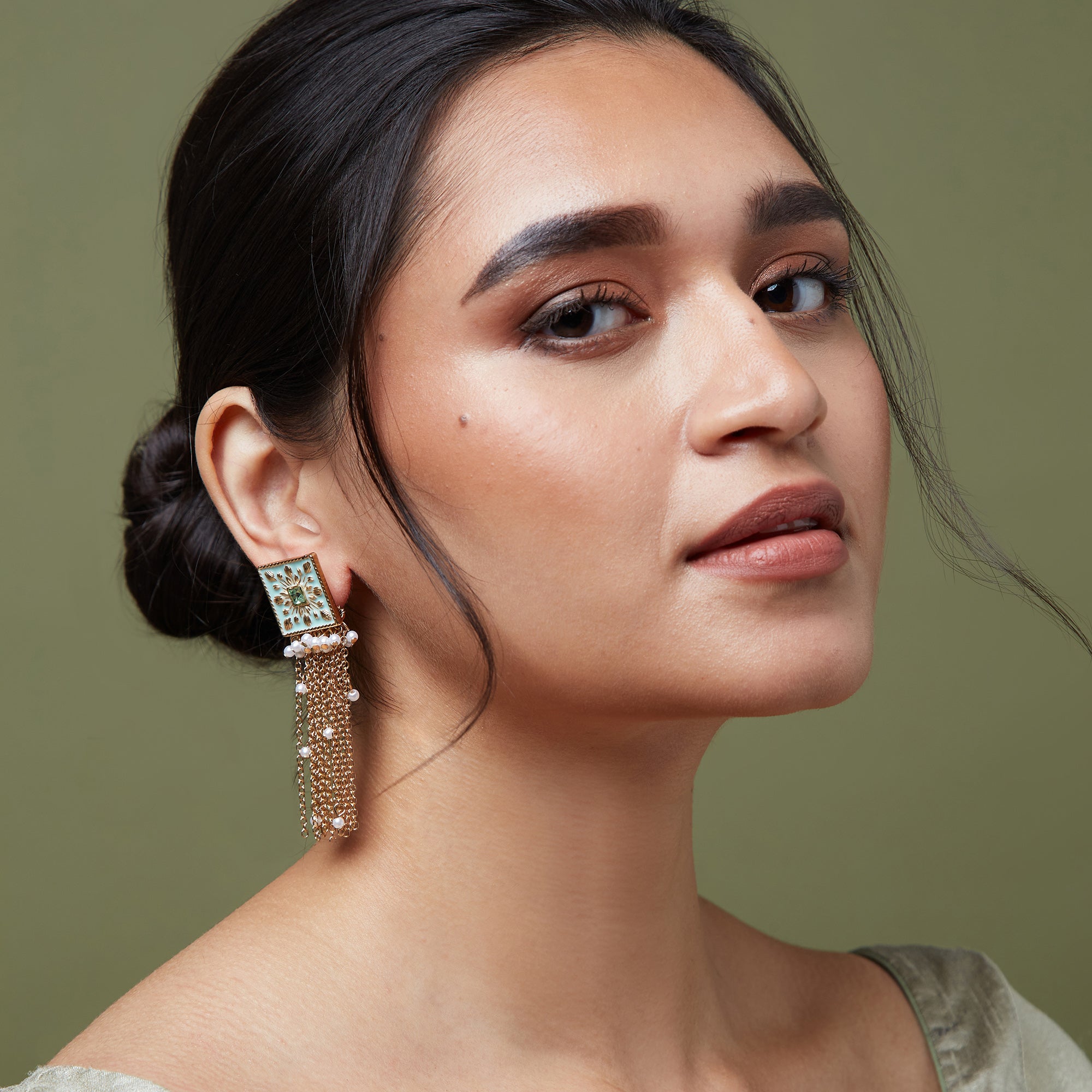 Cubic Zirconia AD Studded Perla Short Drop Earrings