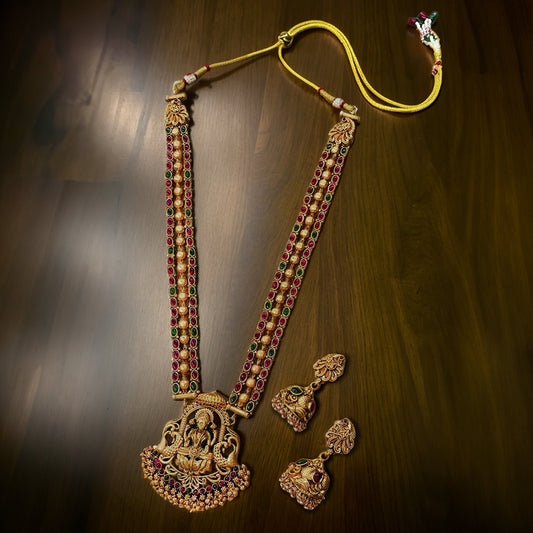 Sold outAnti-Tarnish Long Laxmi Temple Set