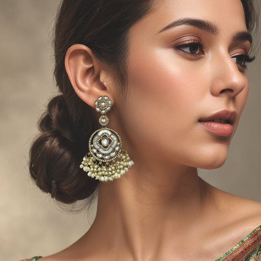 Cubic Zirconia AD Studded Perla Short Drop Earrings