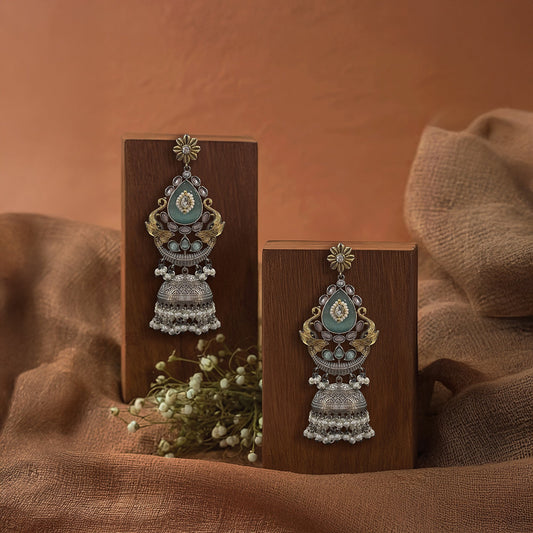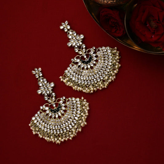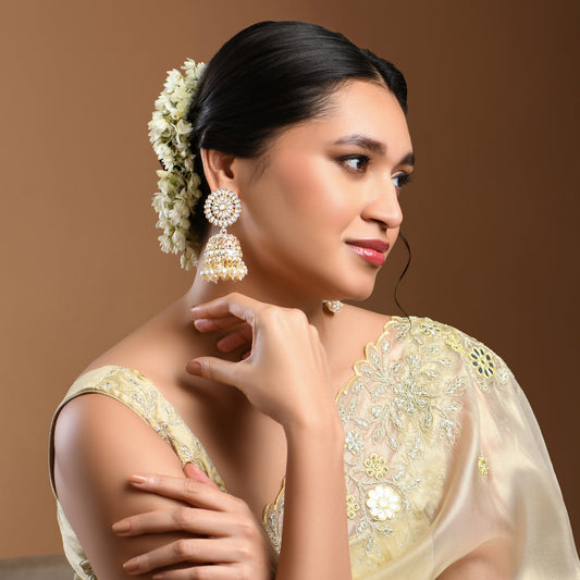 Kundan Jhumka With beads and Pearl Drop Earrings