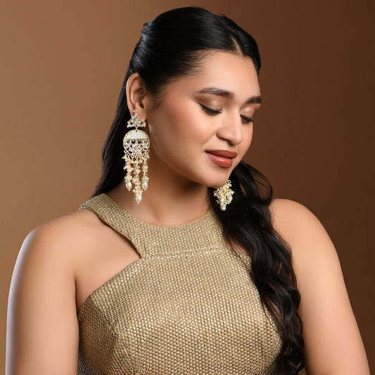 Kundan Jhumka With Beads and Pearl Drop Earring