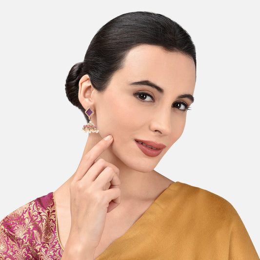 Sold outMaroon Diamond Shape Jhumkas Earring