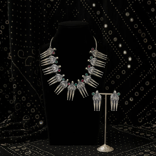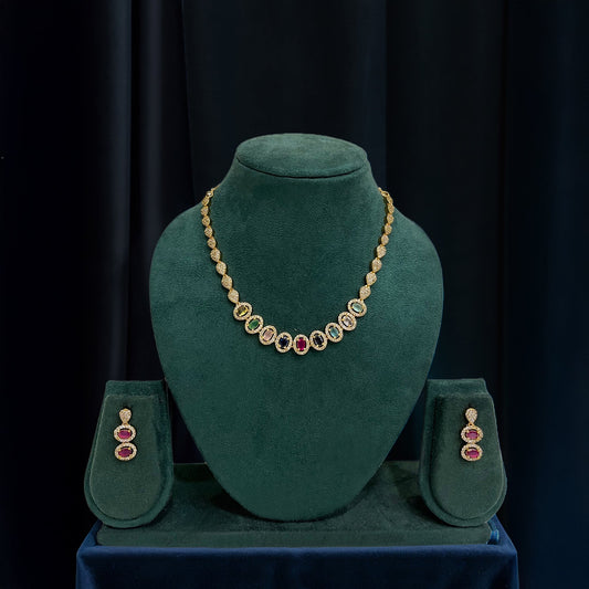 Multi-Colored Stone Navratan Choker Jewelry Set