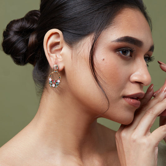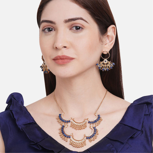 Navy Gold Plated Short Earring Metal Drops & Danglers