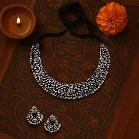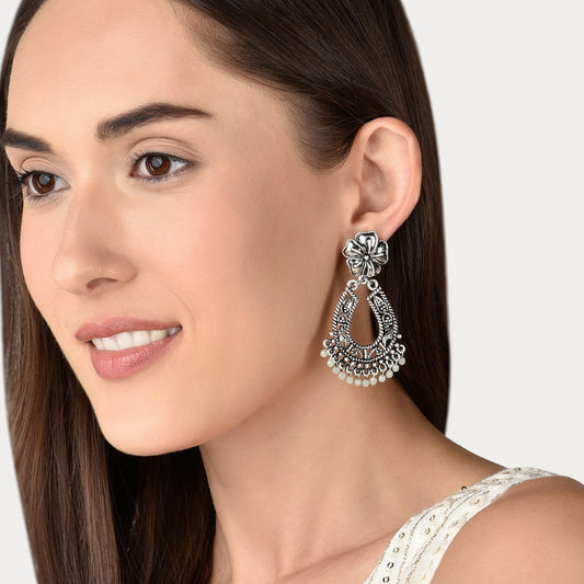 Silver Plated Floral Enamel Chandbalis Metal Chandbali Earring