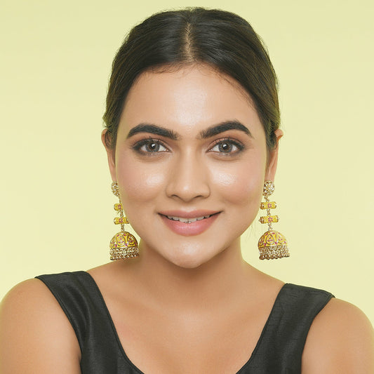 Yellow Meenakari Dome Jumka Long Drop Earring