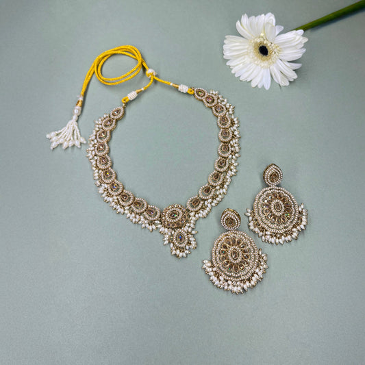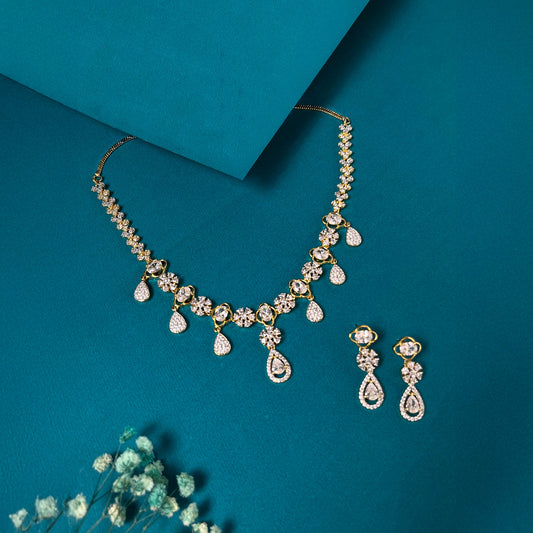 Gold Tear Drop Pearl Diamond Short Drop Earring