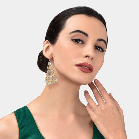 Gold Pink Stone-studded Beaded Long Drop Earrings