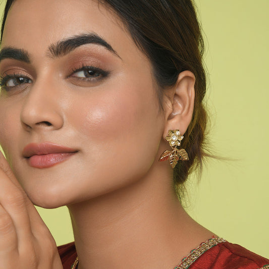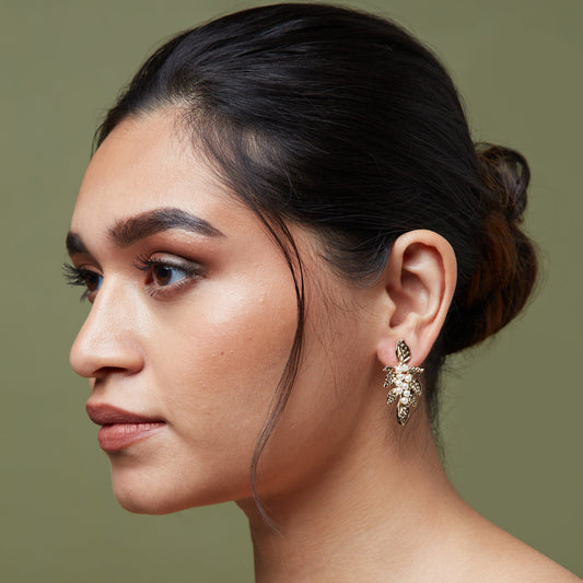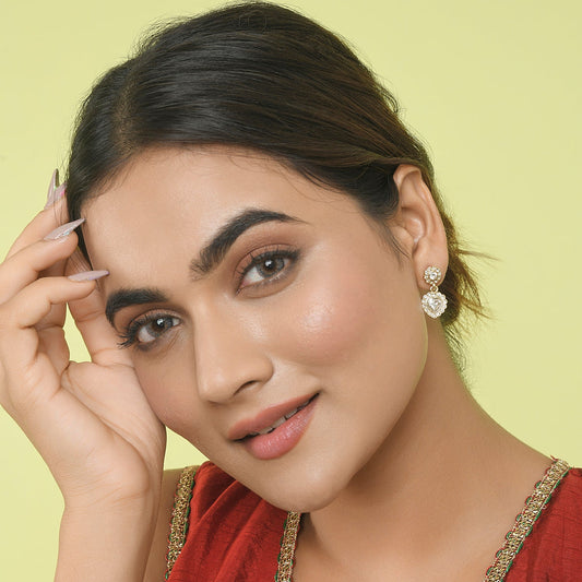 Cubic Zirconia AD Studded Perla Short Drop Earrings