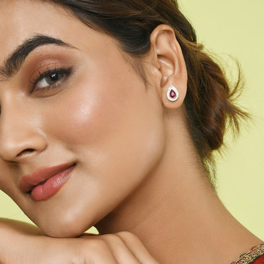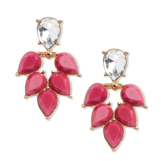 Pink Tear Drop Shape Short Red Stone Earrings
