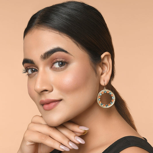Multi Color Gem Hoop Earring