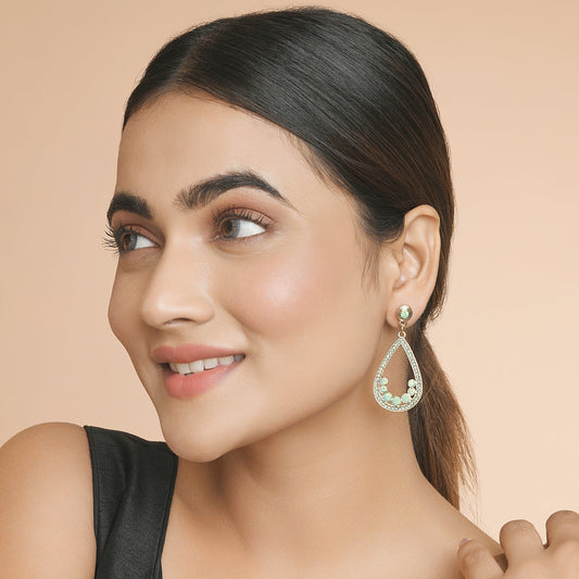 Mint Green Studded Teardrop Hoop Earring