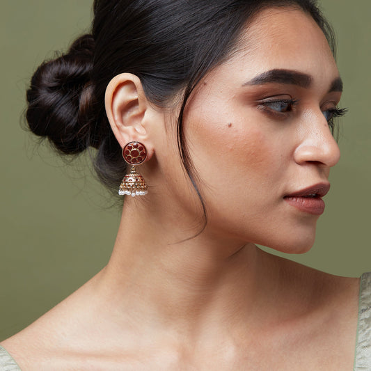 Pretty Enamel Maroon Jhumka Earring