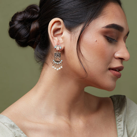 Pearl Oxidized Silver Long Jhumkas
