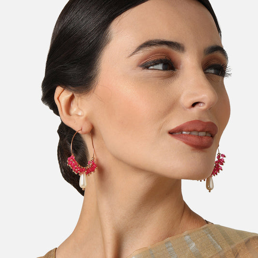 Pink & Pearl White Hoop Earrings