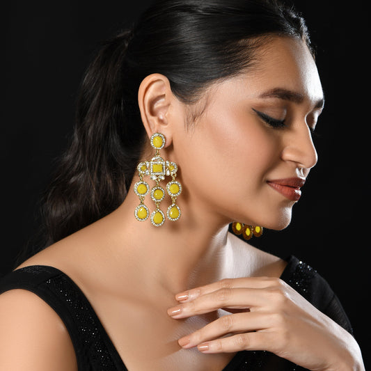 Long Chandelier Yellow Crystal Drop Earrings