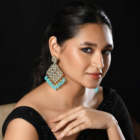 Gold Blue Kundan Earring