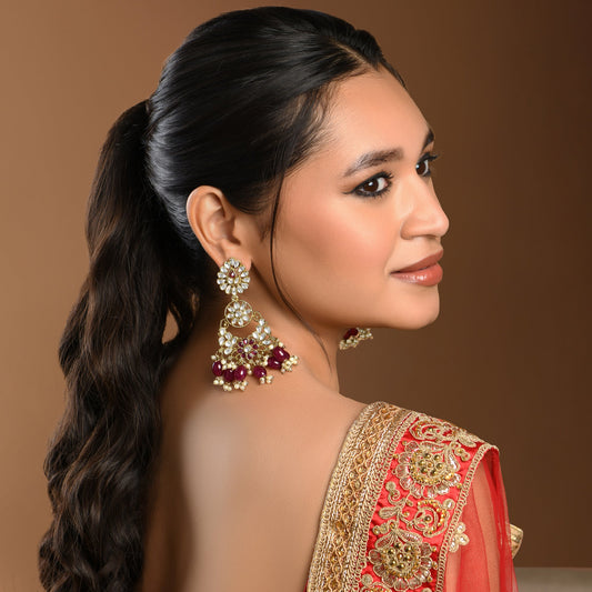 Kundan and Pearls Chandbalis- Red