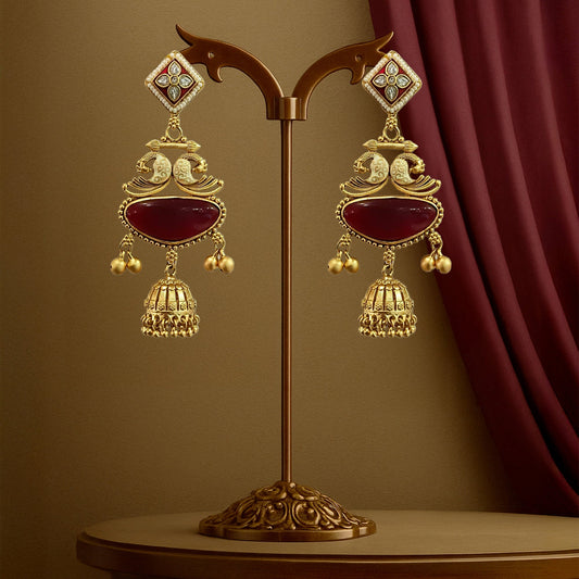 Cubic Zirconia Ruby Jhumka Earring