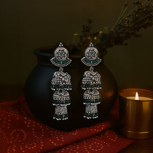 Ritvi Multilayer Jhumkas Oxidized silver Earrings