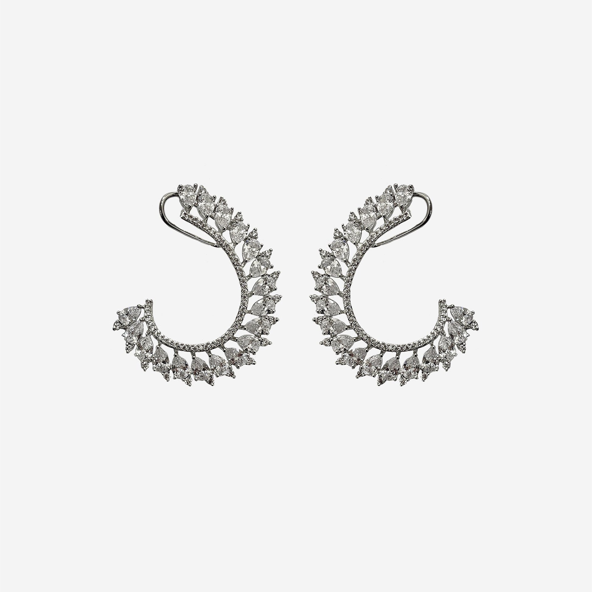 Kalakrith Milano Women Aurora Half Hoop earrings with modern elegance, making them versatile for all outfits. A graceful half-hoop design, studded with pear-shaped stones offers a touch of refined luxury.