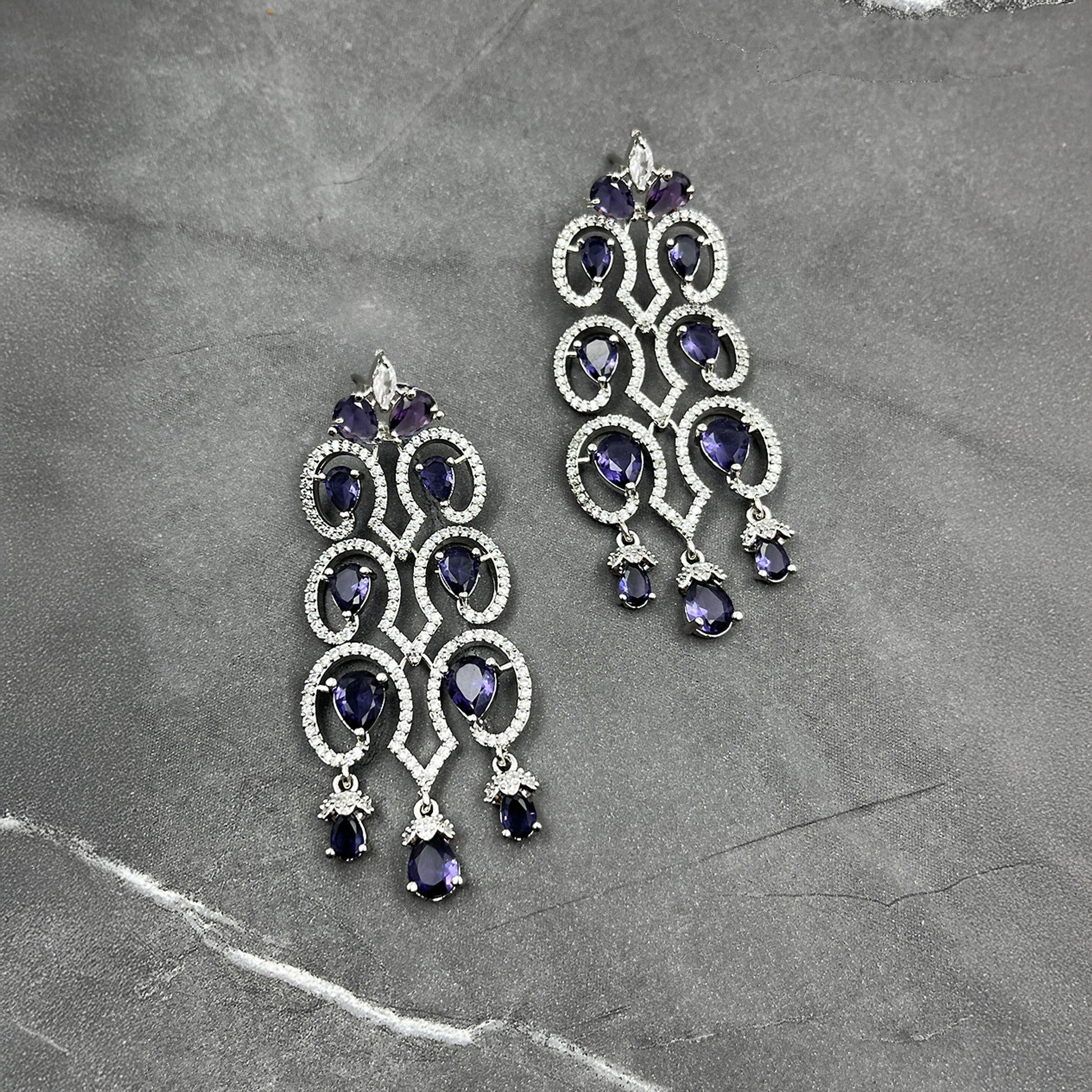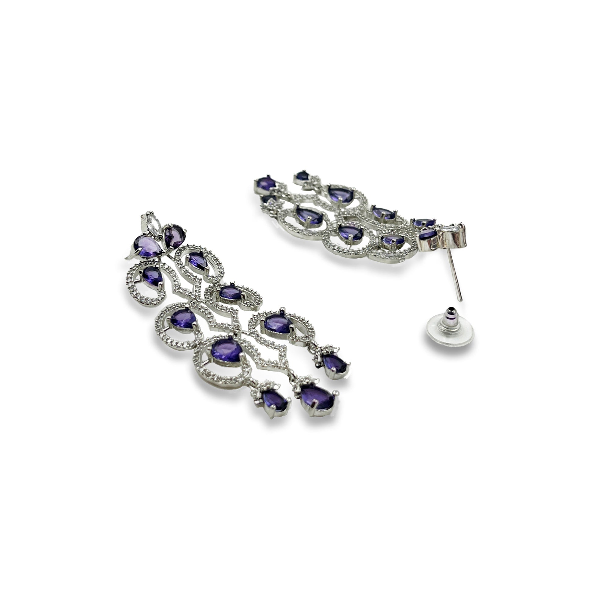 Kalakrith Milano Women Cubic Zirconia AD Studded Dangler Earrings are glamorous, embellished Earrings with striking purple stones which creates a bold cocktail look that exudes sophistication and modern flair.