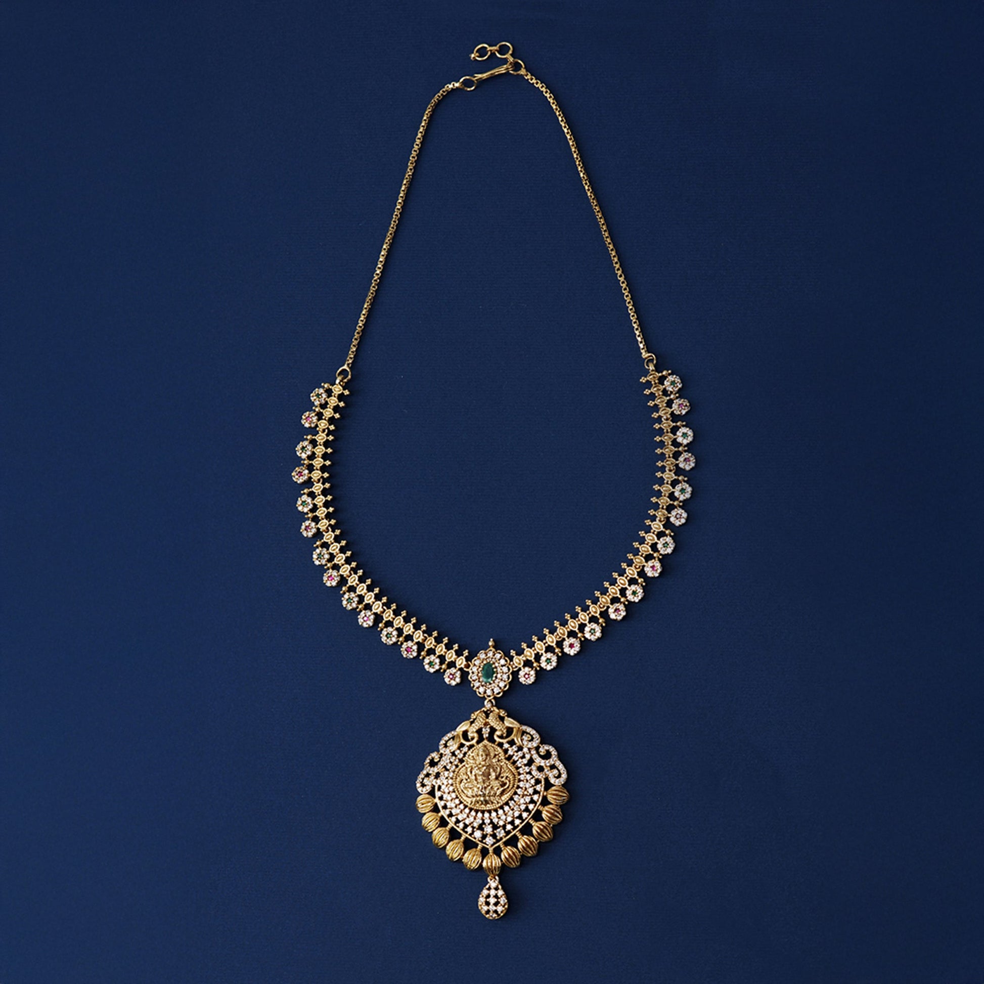 This exquisite Gilded Goddess necklace set, accompanied by matching earrings, embodies sophistication and charm. The necklace features a delicate design that gracefully enhances the neckline, while the earrings provide a complementary touch. Crafted with attention to detail, this set is a timeless addition to any jewelry collection.