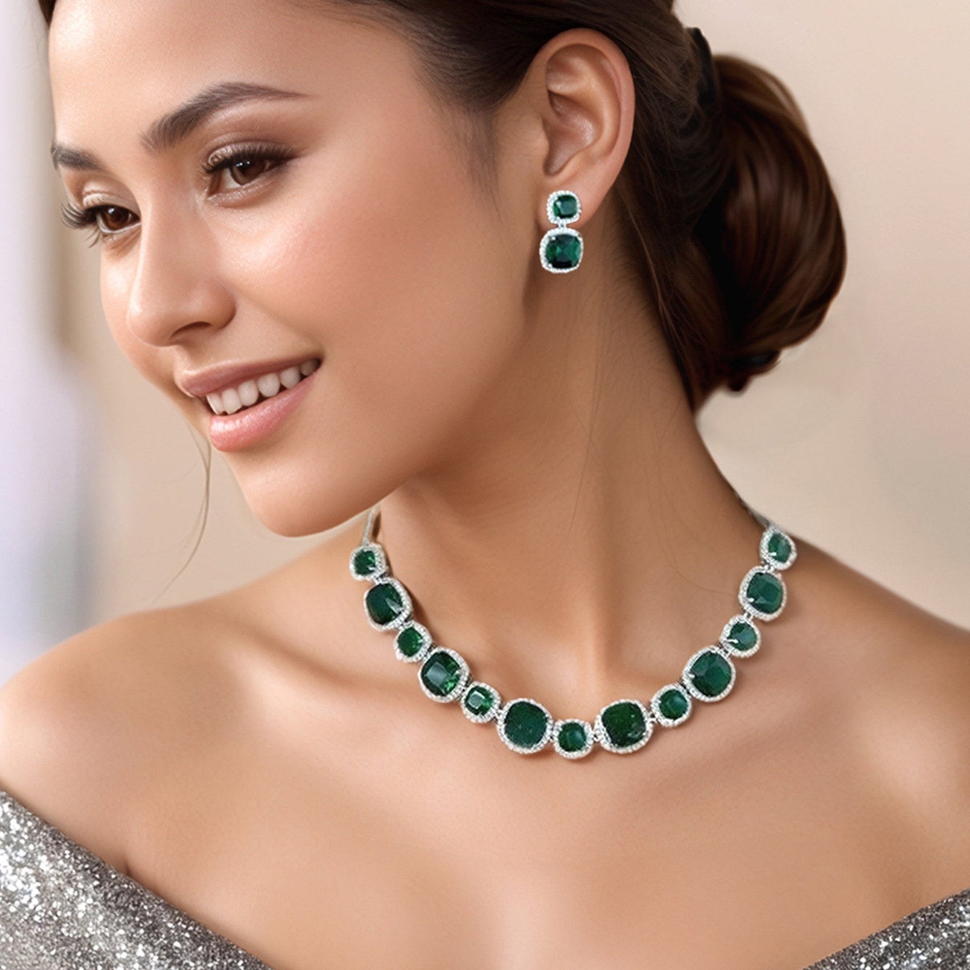 Green Emerald Stone & Cubic Zirconia Jewellery Set