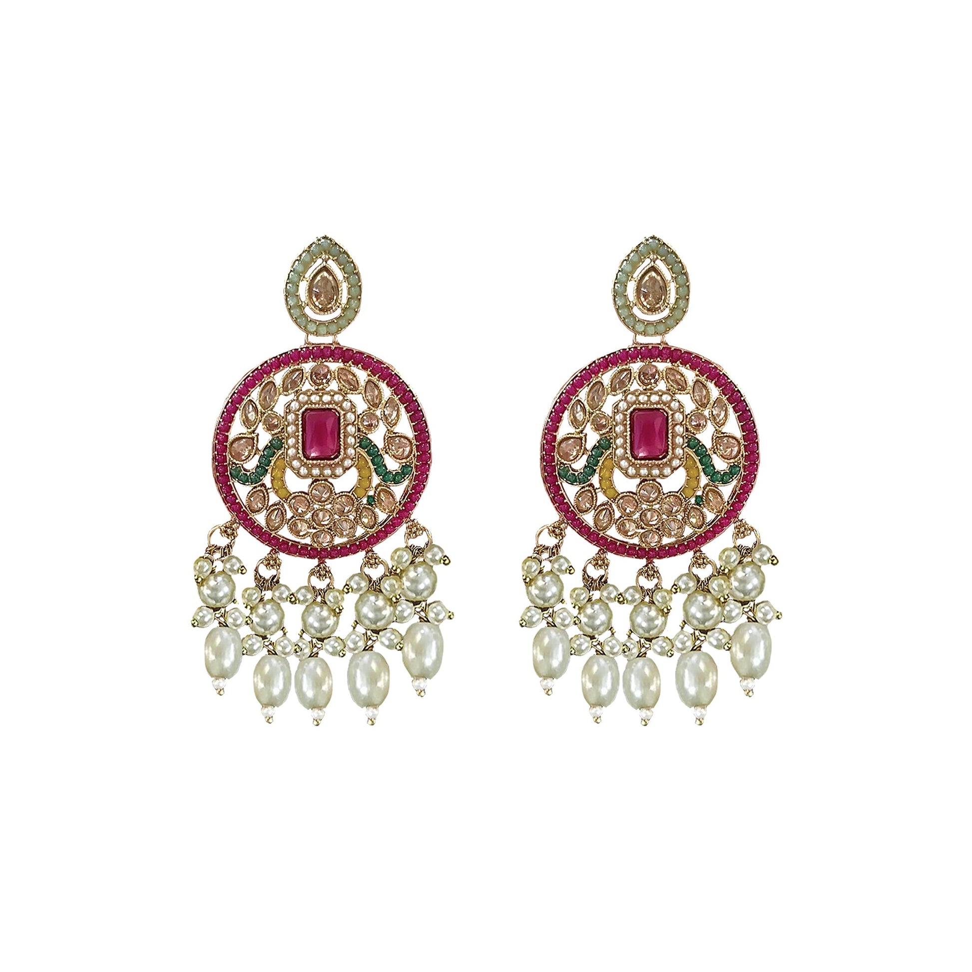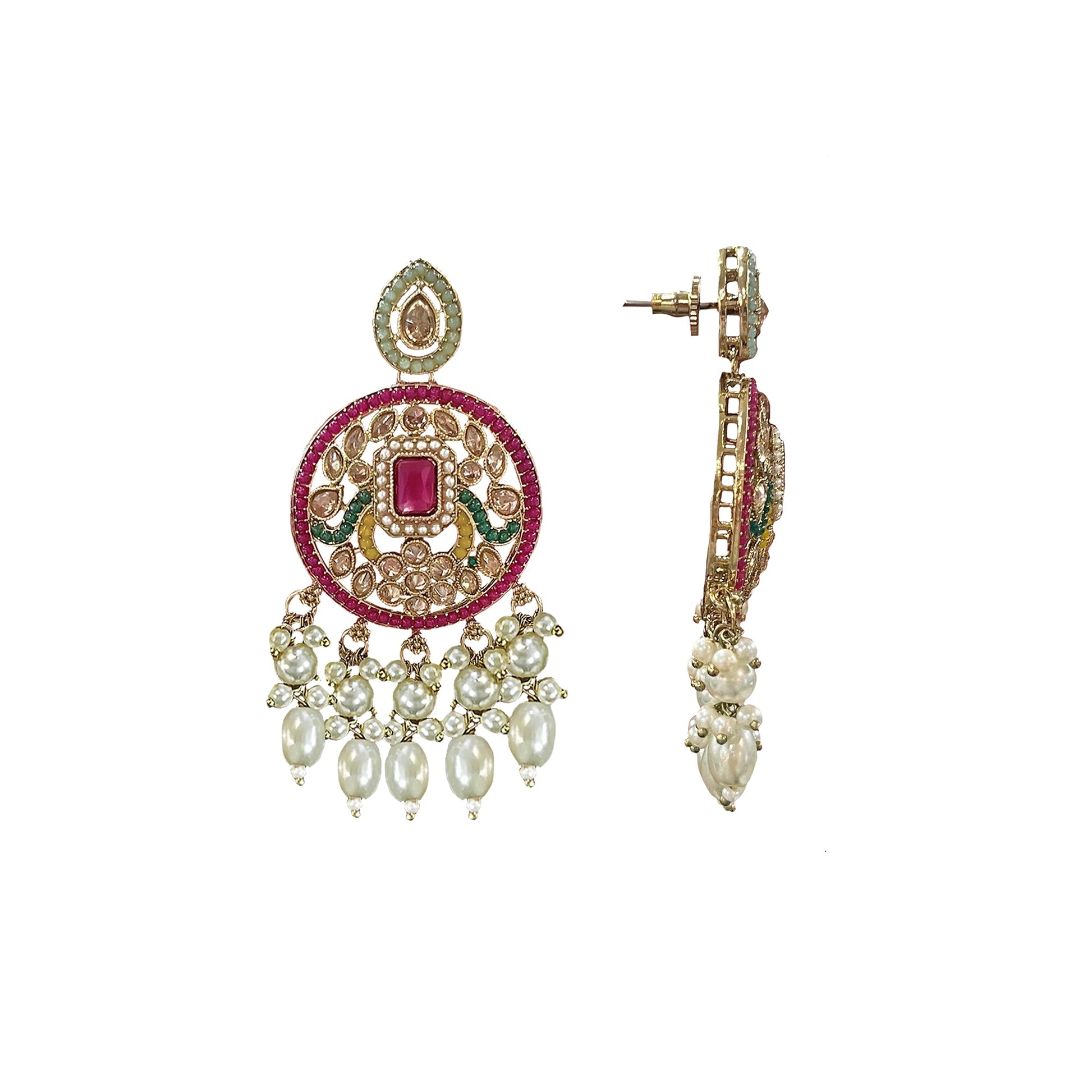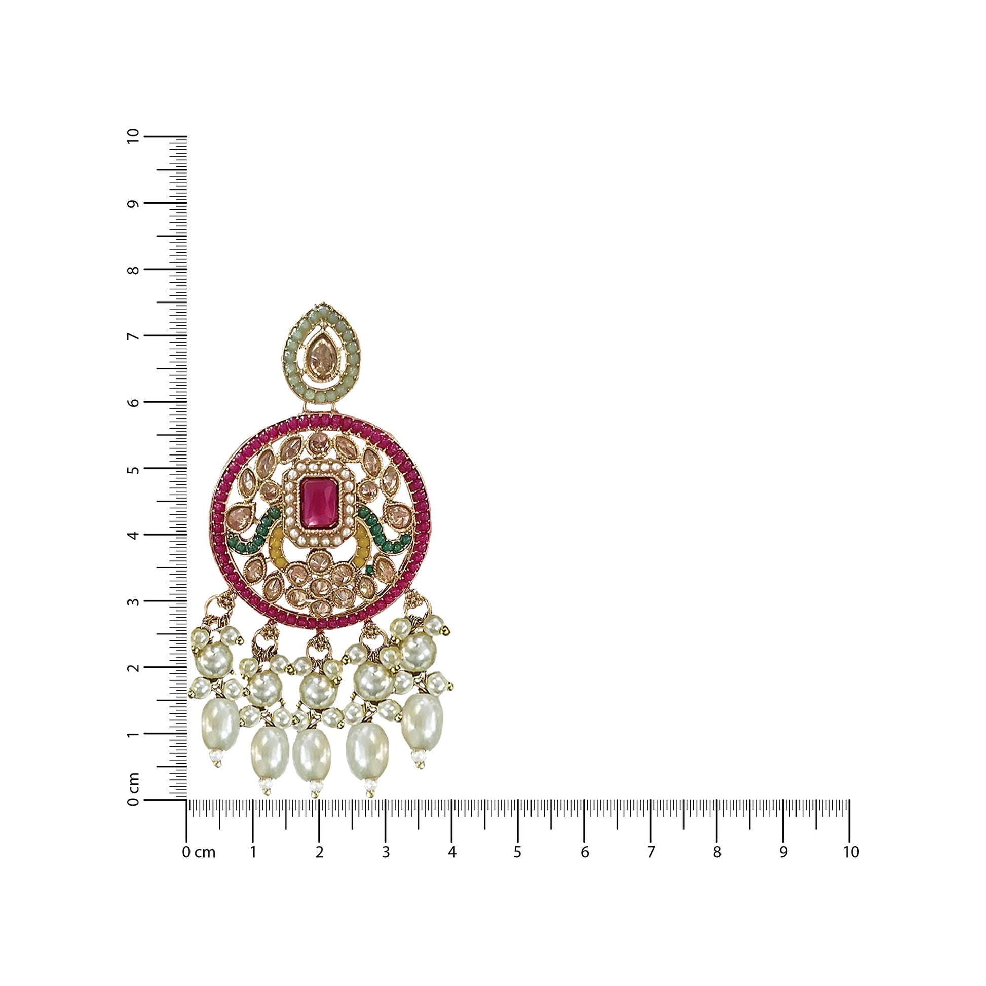 Kalakrith Milano Women pearl choker, adorned with multi-color beads and tiny beaded charm drops, captures the regal opulence of the Mughal era, paired with large, multi-beaded earrings for a bold yet timeless look.