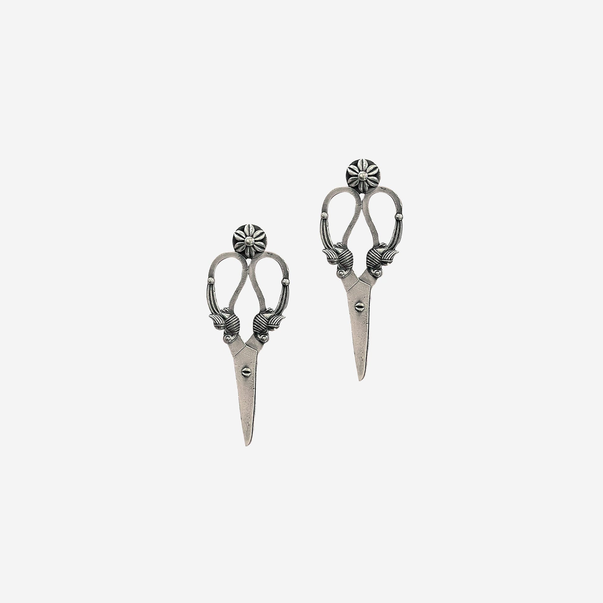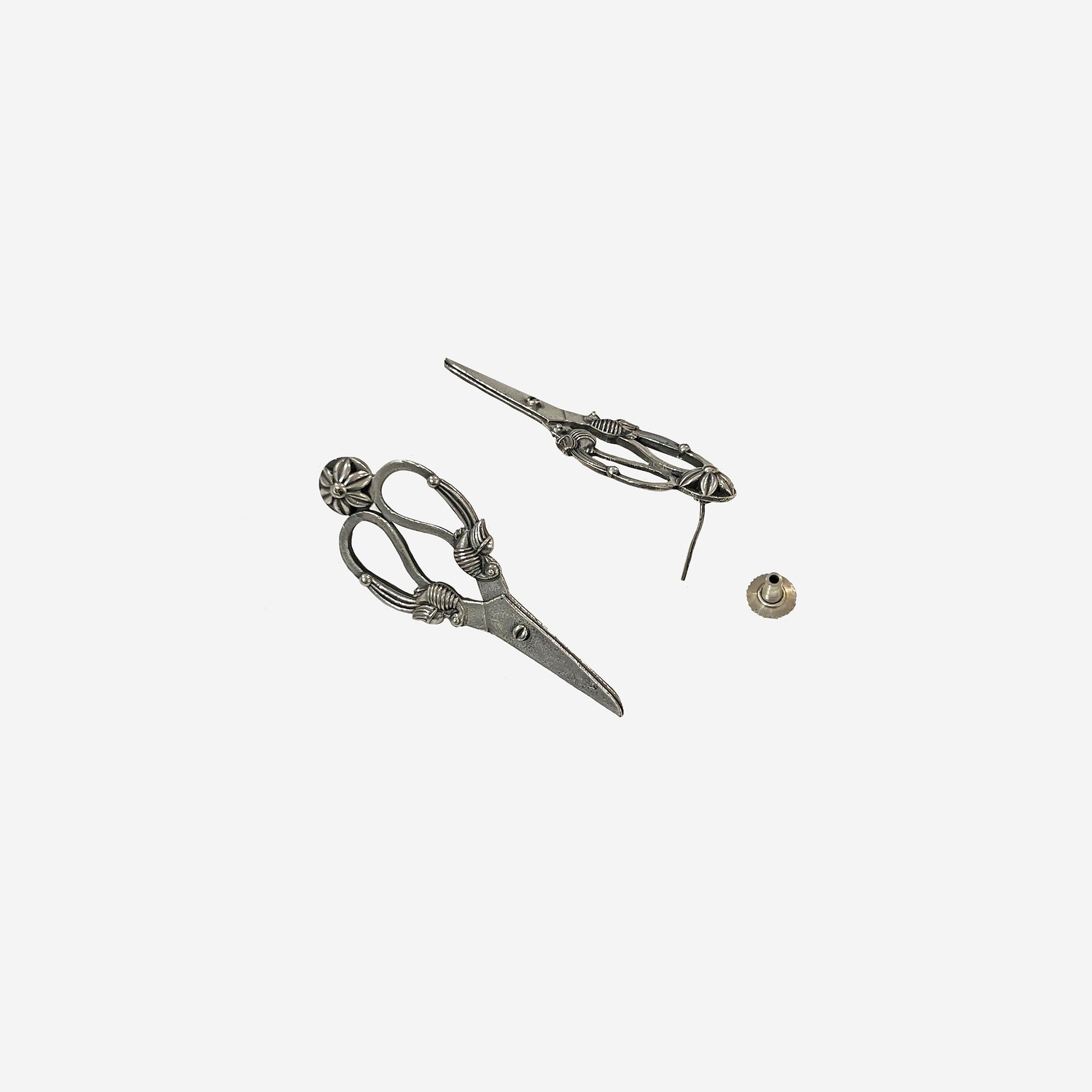 Kalakrith Milano Women oxidised scissor studs with a delicate flower top are intricately carved to reflect fine craftsmanship and playful design. With their banjara-inspired charm and oxidised finish, they make a striking statement that's equal parts edgy and bold.