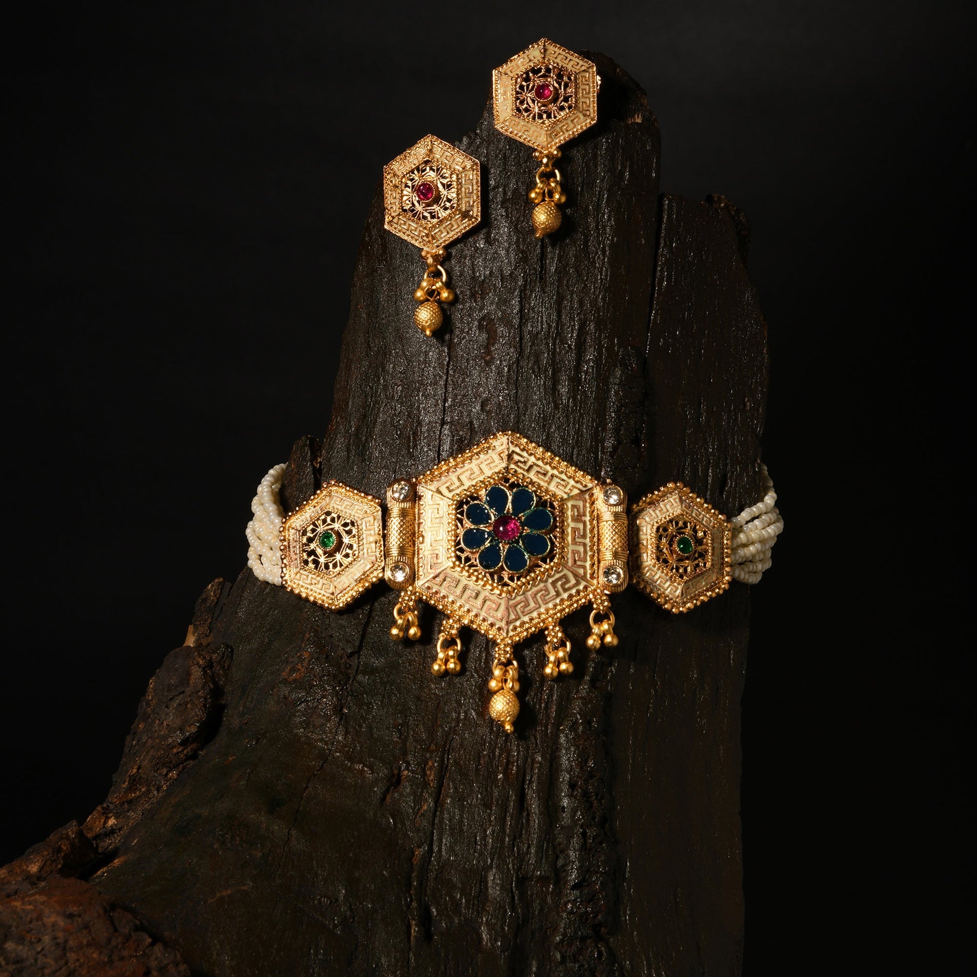 Enameled Pearl Choker Set