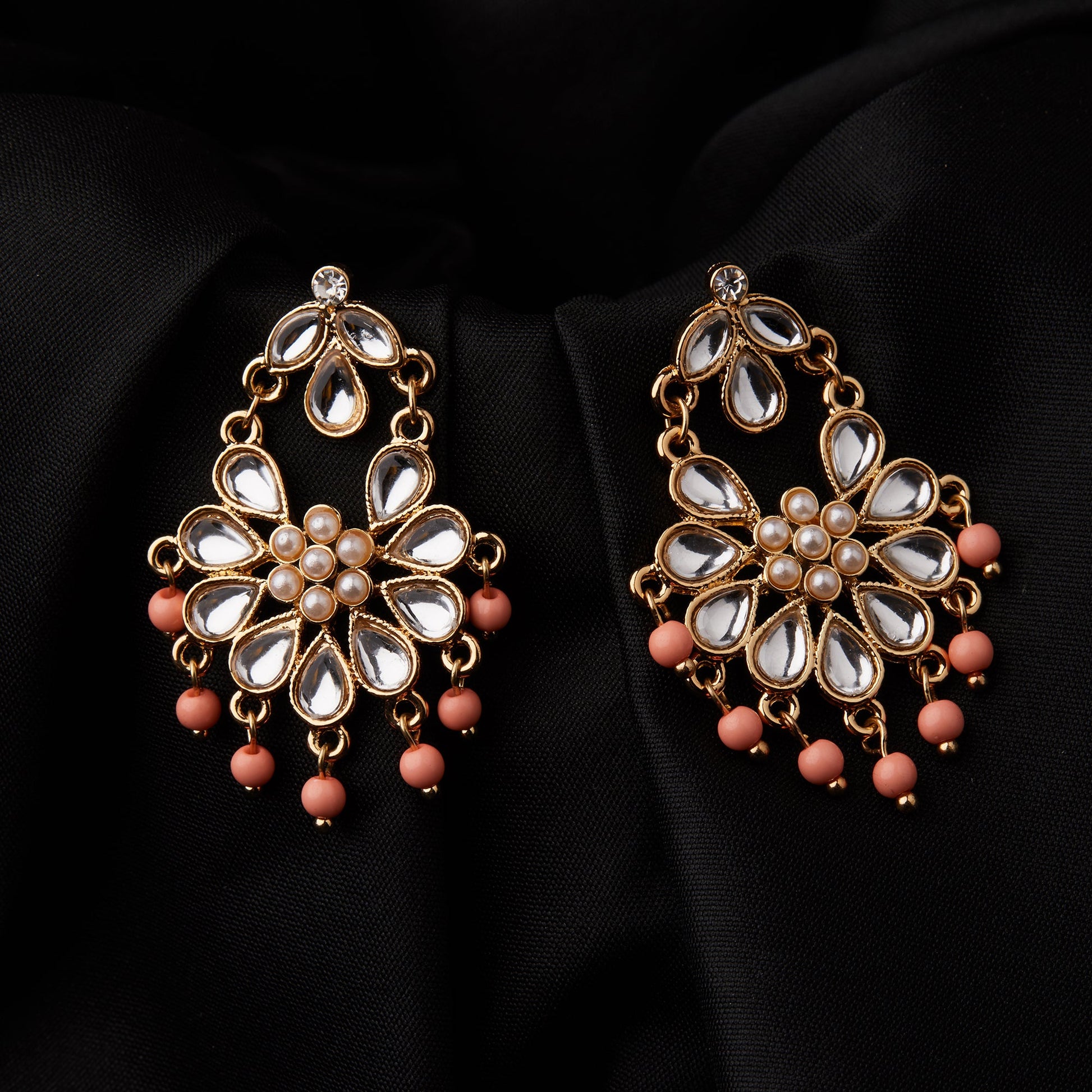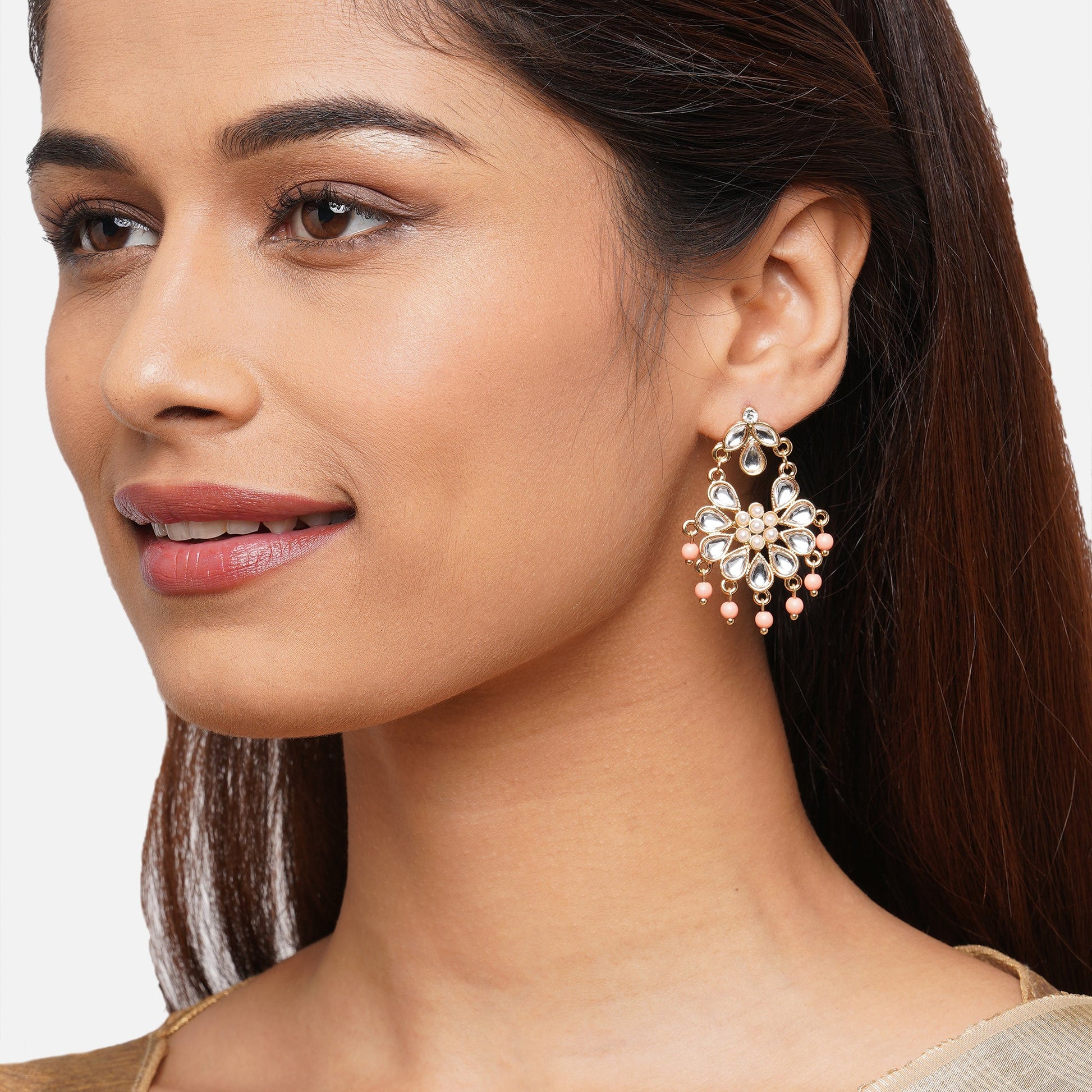 Simple yet bold, these pink kundan short drop earrings are must have for the summer hues pop and lightweight design for the upcoming festive occasion.