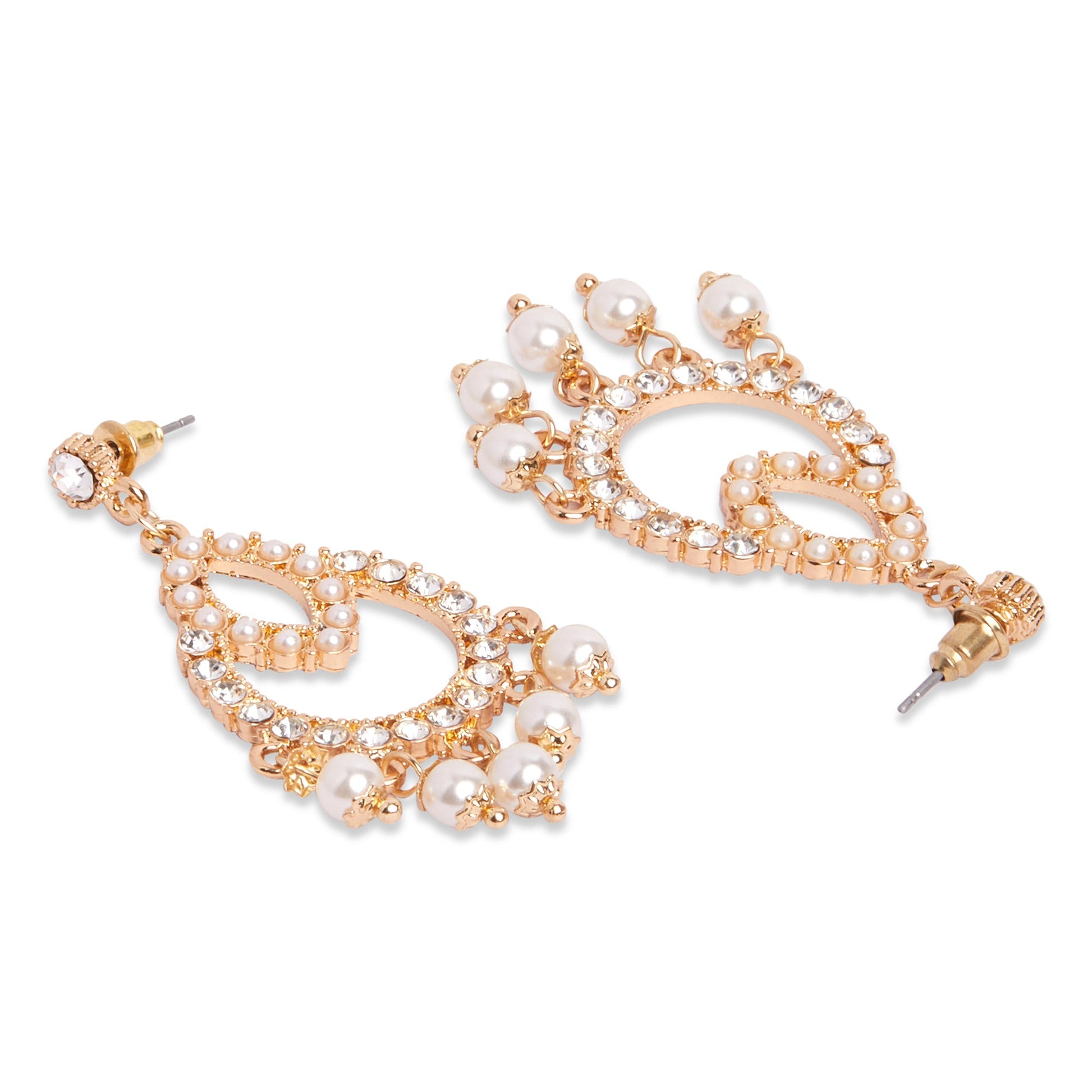 A modern classic, this pair of diamante drop earrings features an oval studded drop, enhanced by a gold metal setting. Make the heads turn with these earrings are a head turner in every party or social event.