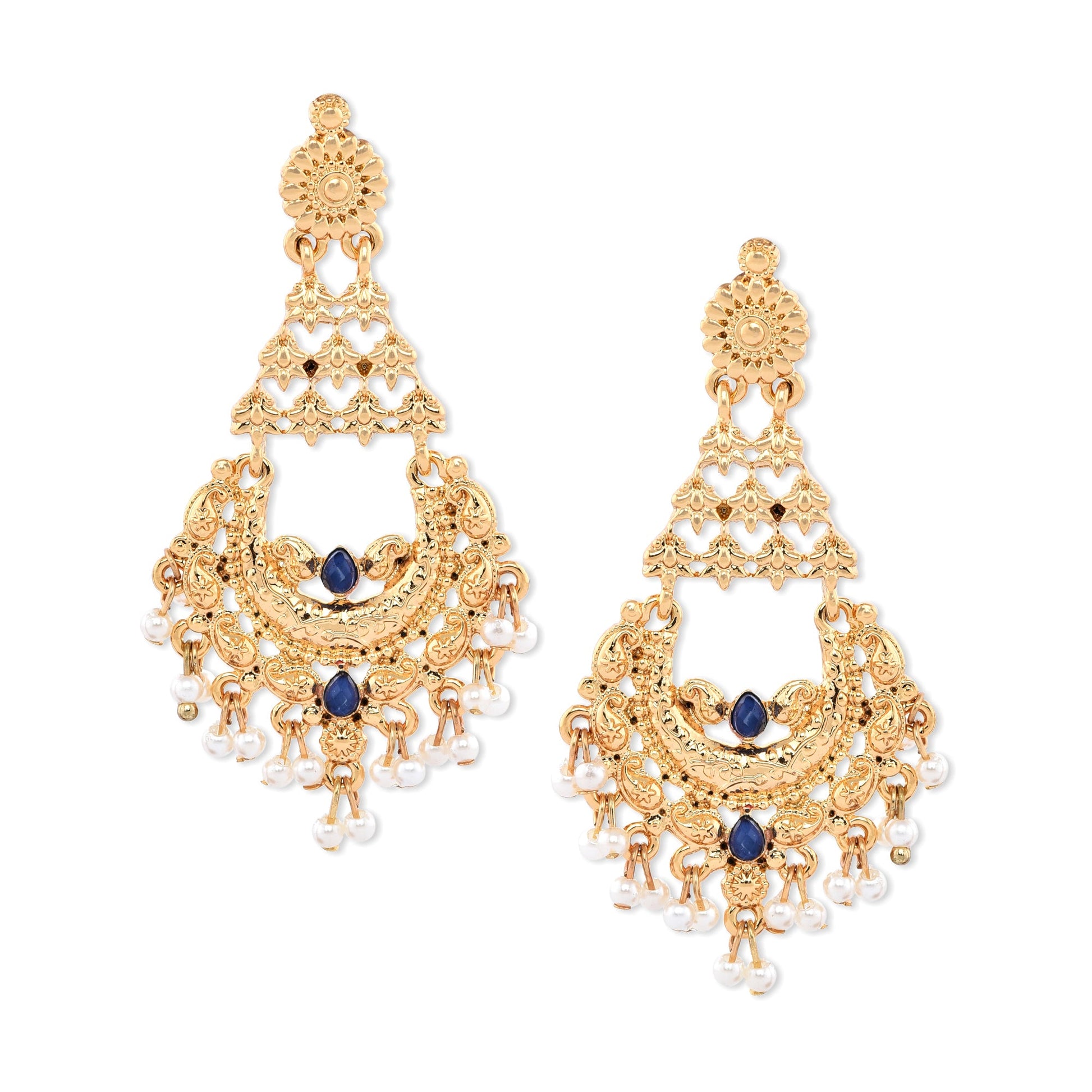 A statement making piece like this one adds a unique and fashionable character to occassionwear. Designed like a temple jewelry these earrings showcase the right mix of tradtional look with the right twist of modern design.