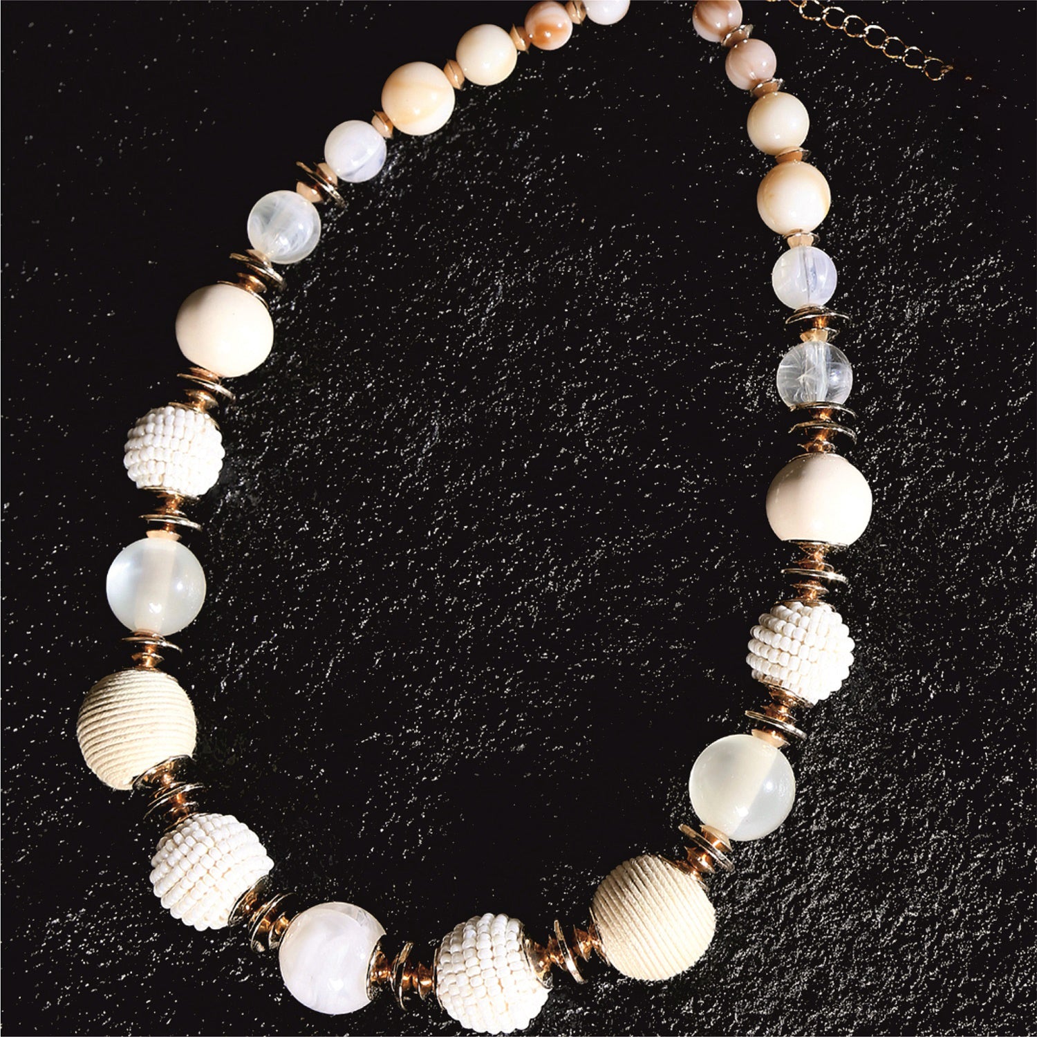 Beautify yourself with this beautiful white and beige necklace from Kalakrith. Framed using 100 percent zinc, this necklace exhibits a refined finish. The eye-catching design reflects eccentric workmanship.