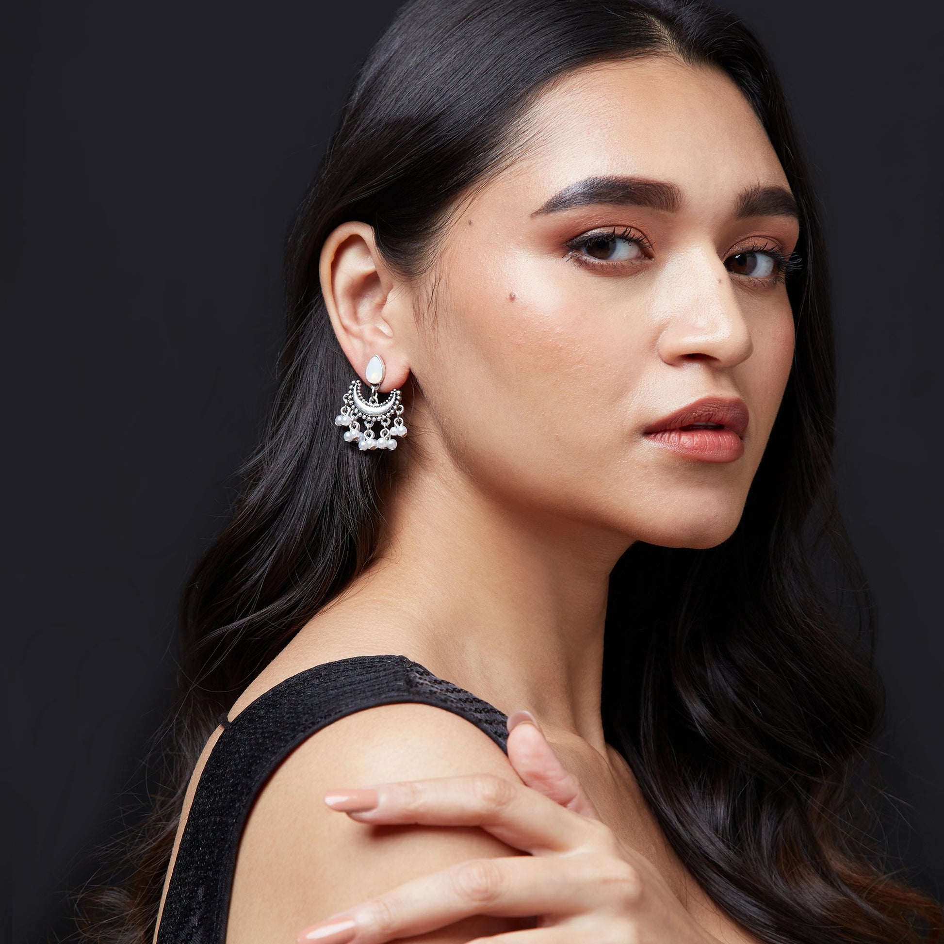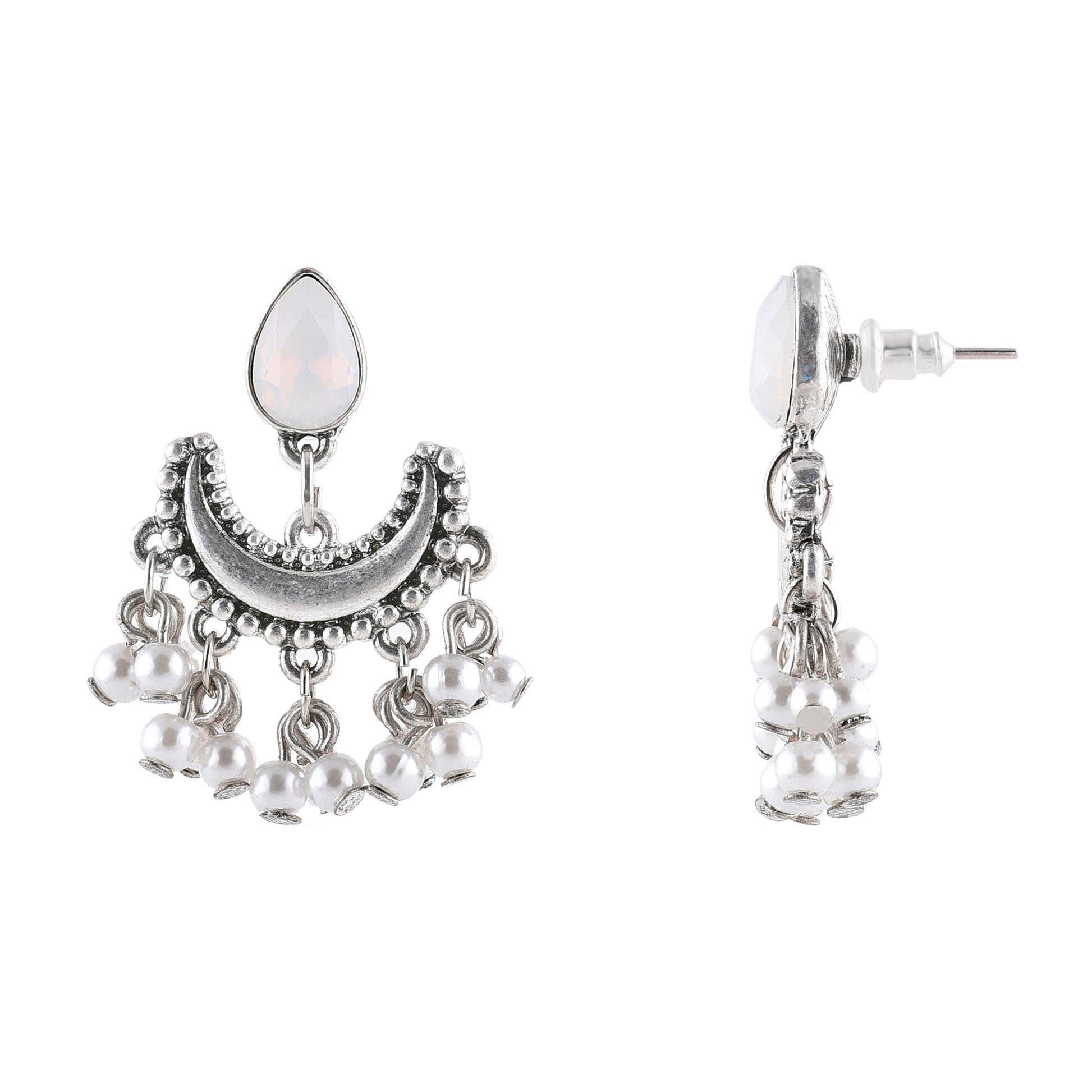Oxidised Silver Opal Drop Earrings