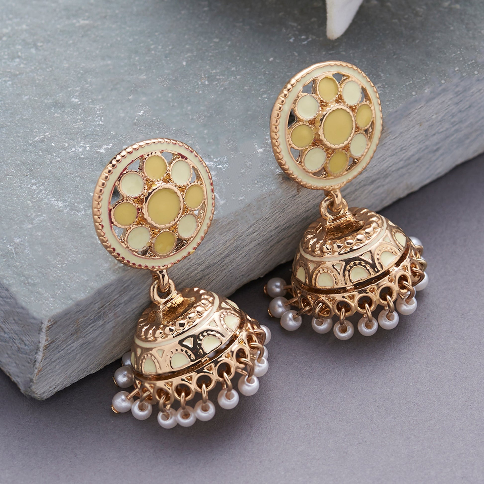 Pretty Enamel Yellow Jhumka