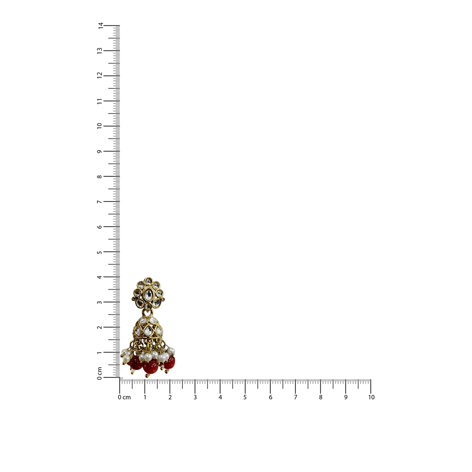 Elegant Kalakrith Milano Women collar necklace featuring ruby and pearl round drops, crafted with flexible links for a graceful fall on the neck. A subtle traditional touch with a hint of rajasthani tradition makes it perfect to pair with Indian ensembles. Paired with tiny matching jhumkis and a maangtikka.
