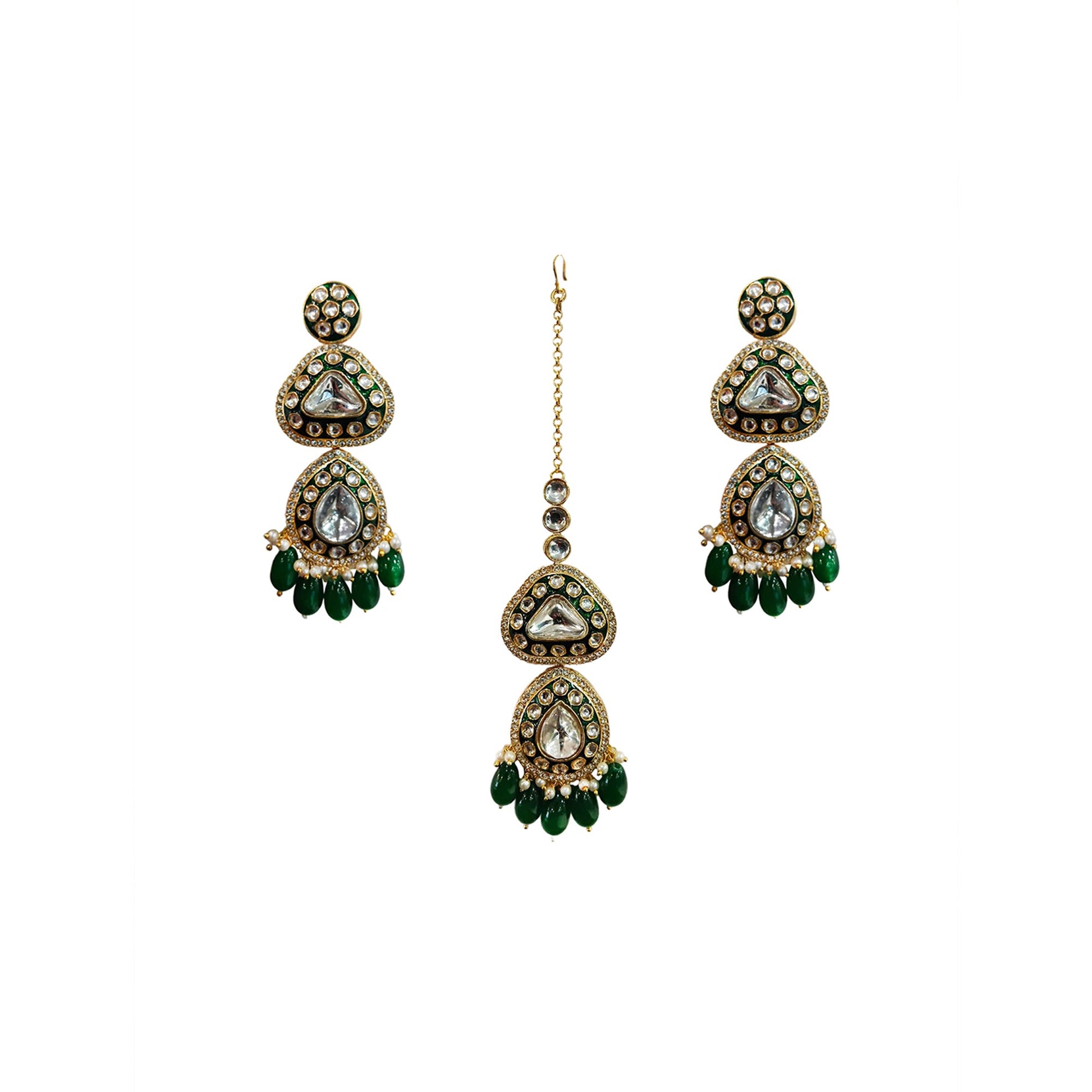 Kalakrith Milano Women this exquisite set features a mangtikka and earrings crafted with traditional kundan work and vibrant meenakari detailing, adorned with sparkling cubic zirconia stones. Perfect for weddings and festive occasions, it blends classic artistry with modern sparkle. Elevate your ethnic look with this elegant and timeless jewelry set.