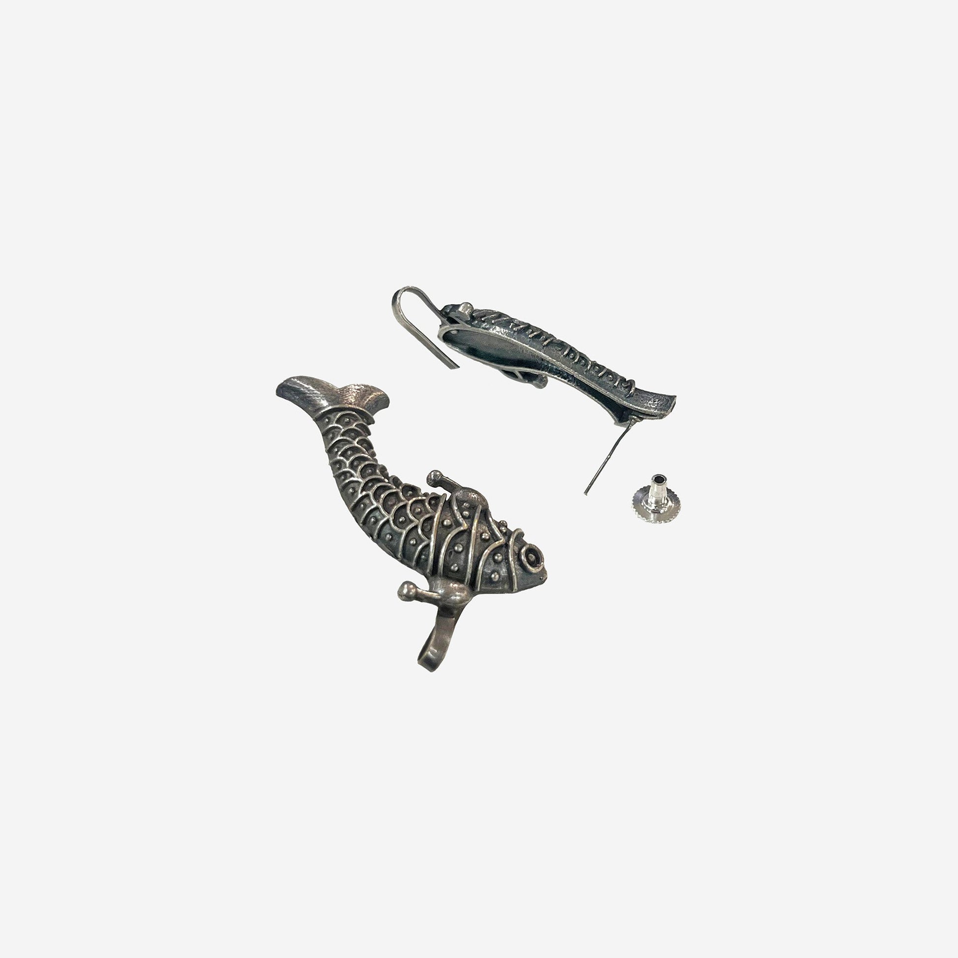 Kalakrith Milano Women oxidised fish stud earcuff features a bold, curved silhouette with intricately carved scales and tribal-inspired detailing. A quirky yet rooted design, it brings a bohemian banjara flair that works beautifully with fusion wear and statement ethnic styles.