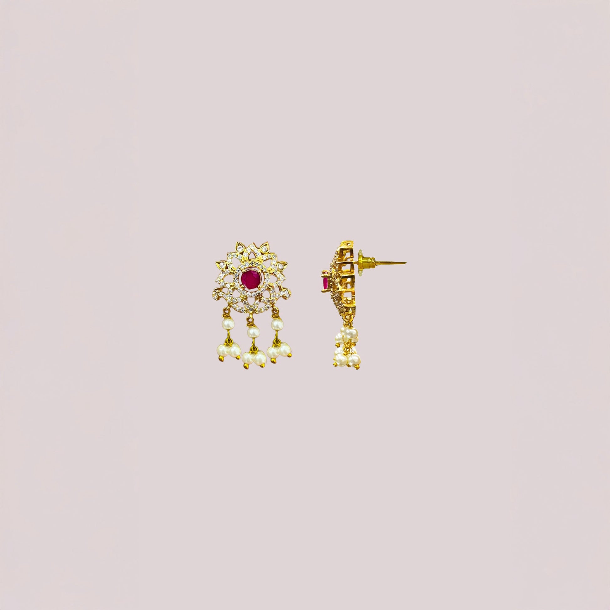Kalakrith Milano Women festive choker set features a stunning peacock motif, adorned with brilliant CZ and vibrant ruby stones, creating a bold yet elegant statement piece perfect for celebrations.