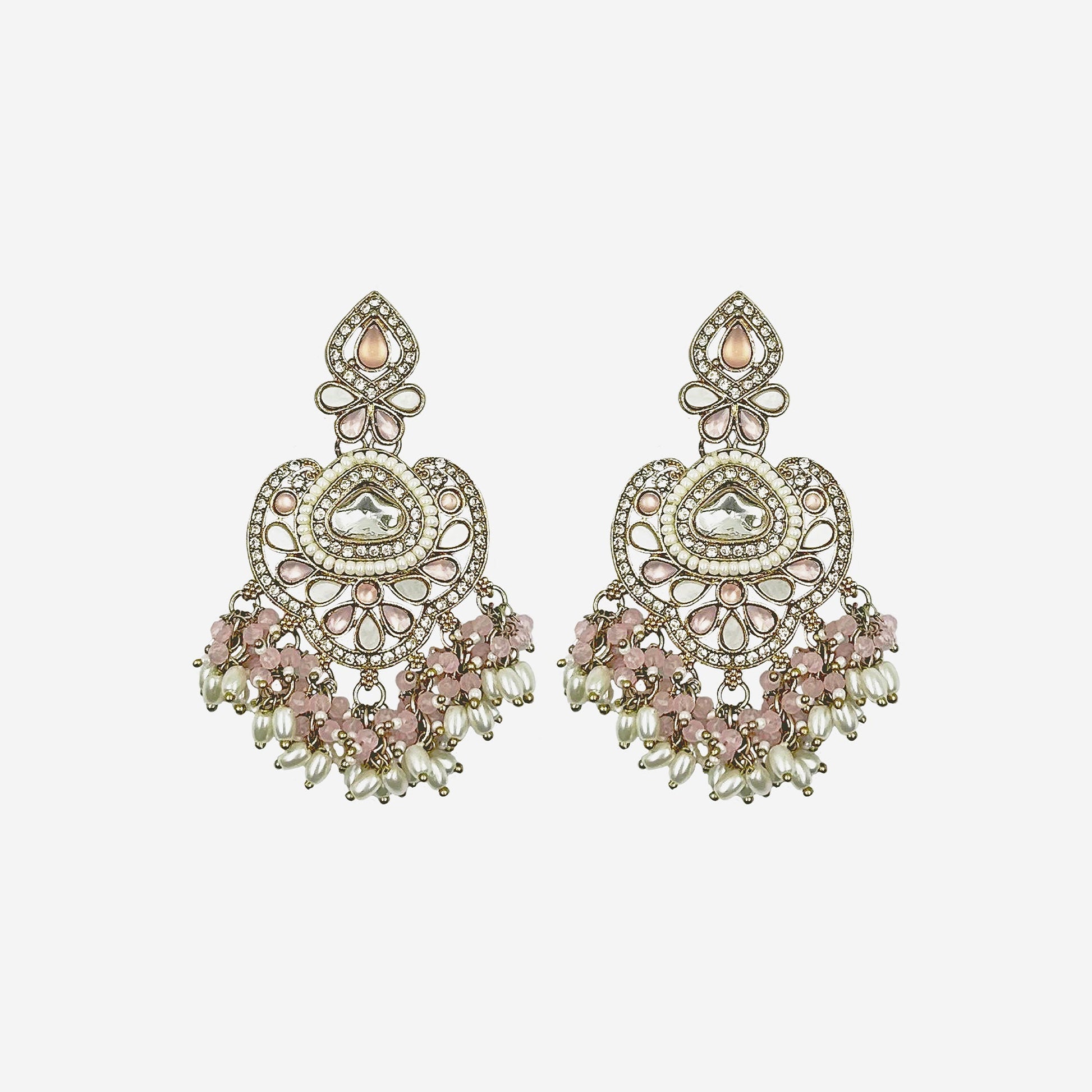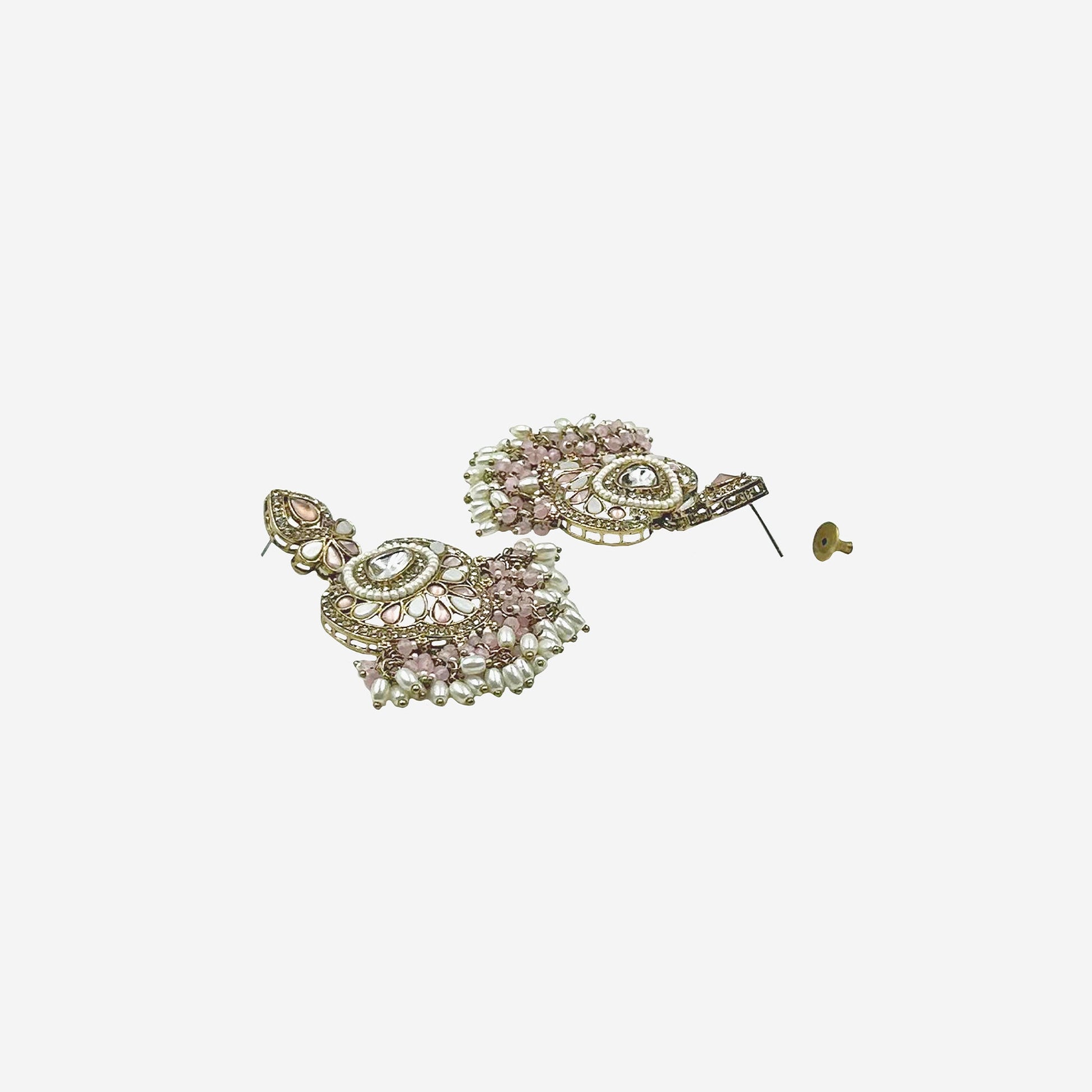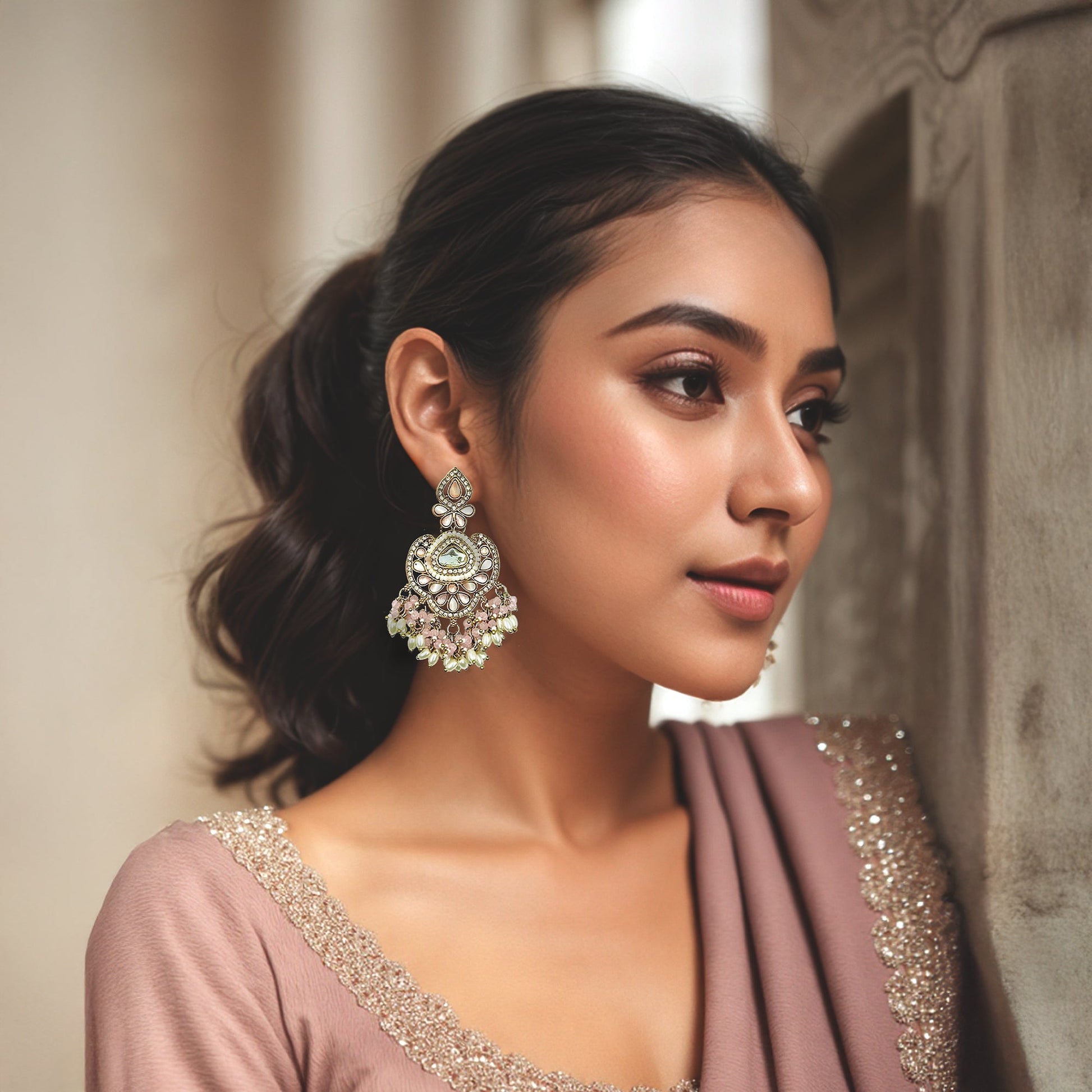 Kalakrith Milano Women traditional chandbali earrings, adorned with stones in shades of pink exuding elegance and festive charm