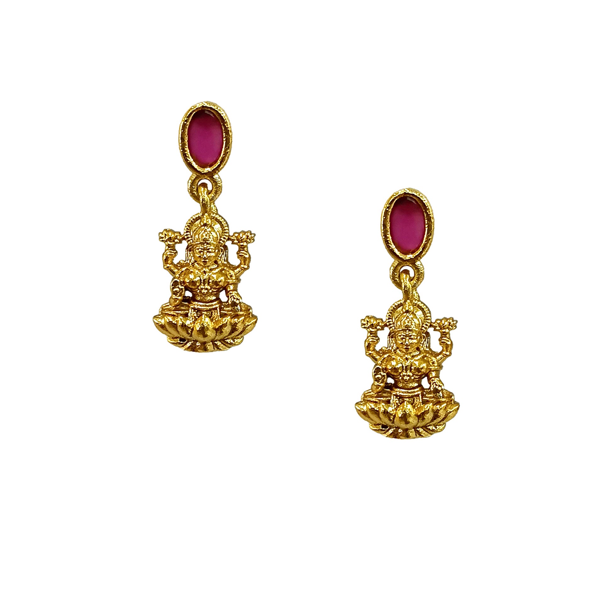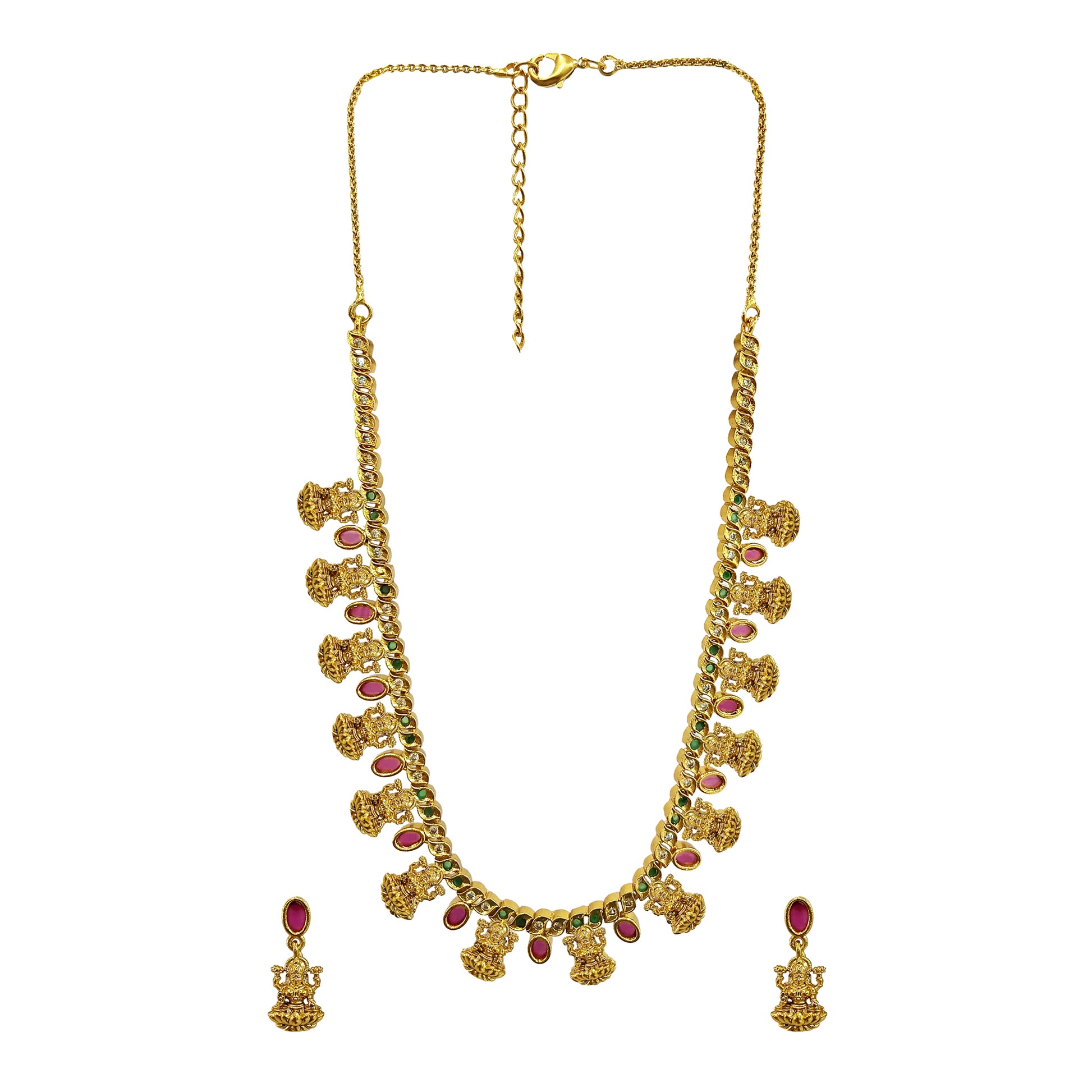 Kalakrith Milano Women divine temple-style necklace, featuring alternating Lakshmi motifs, intricately studded with shimmering stones, embodying elegance and sacred grace.